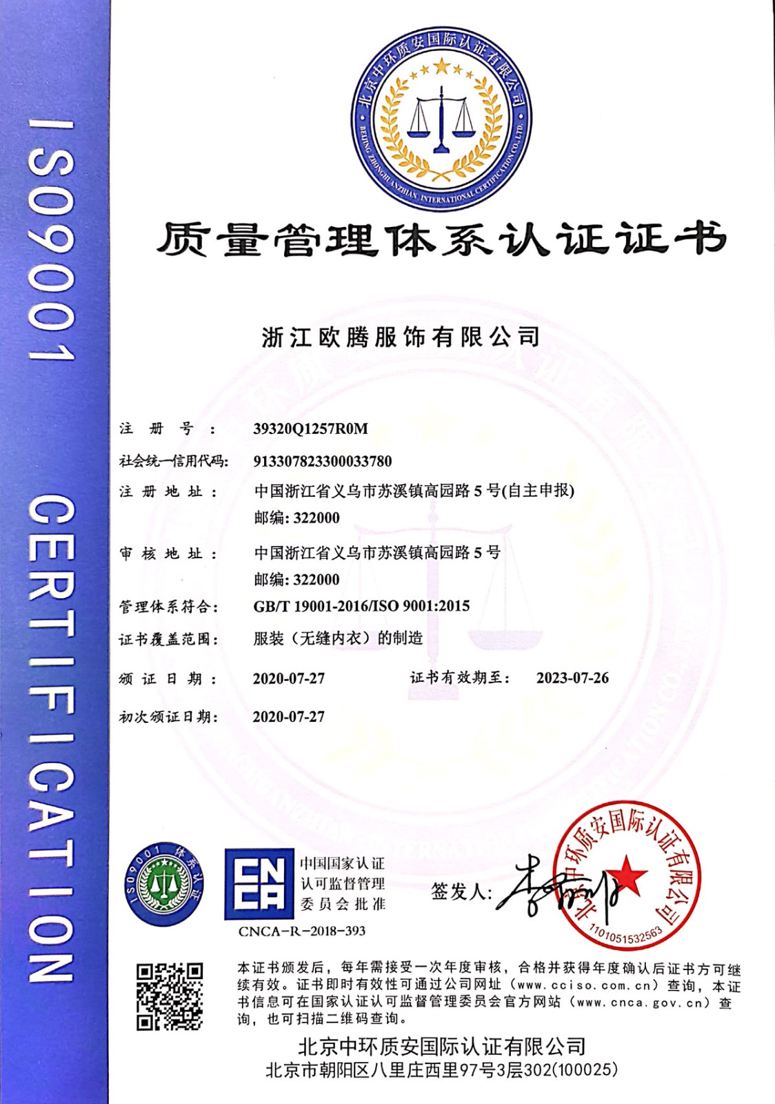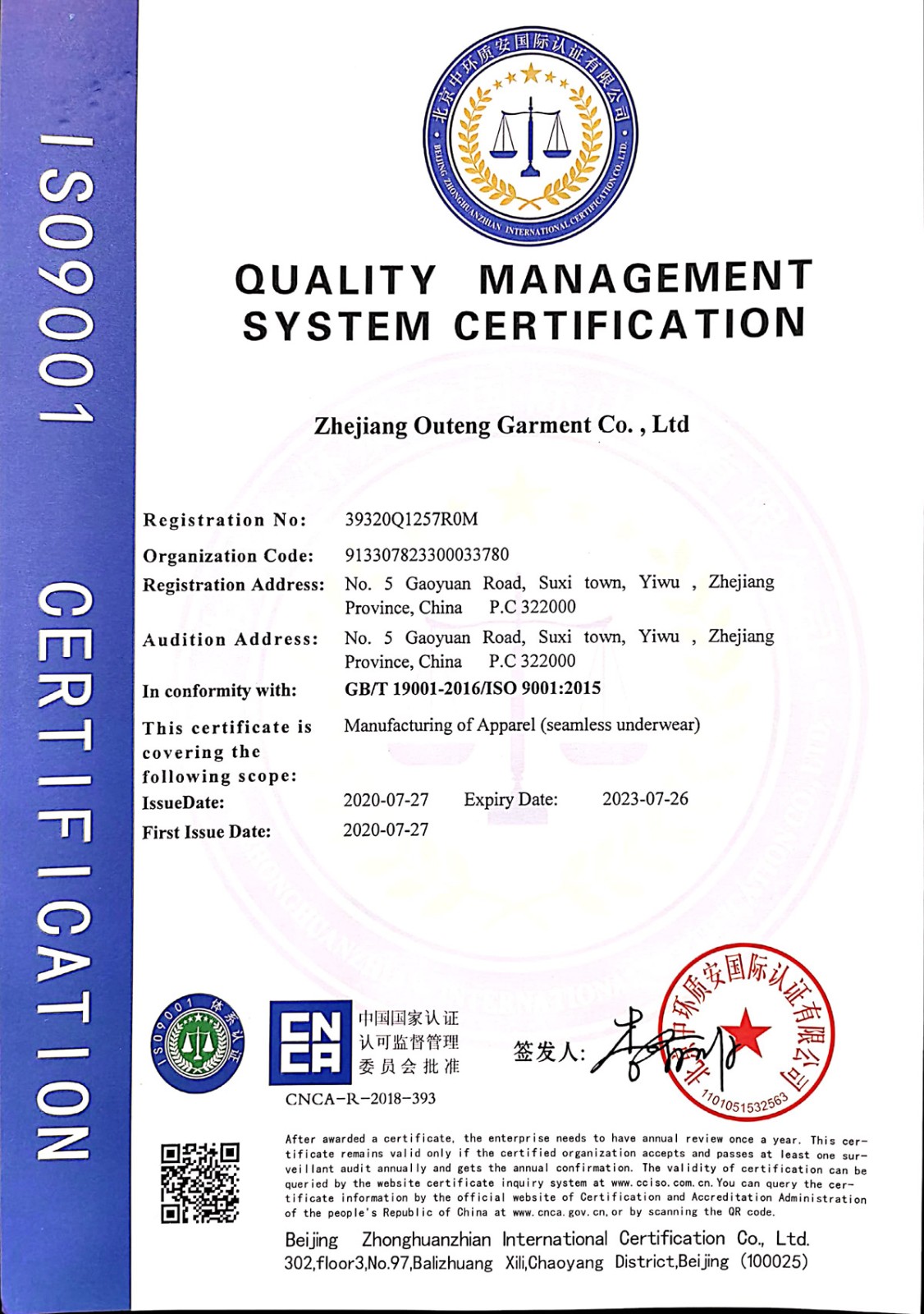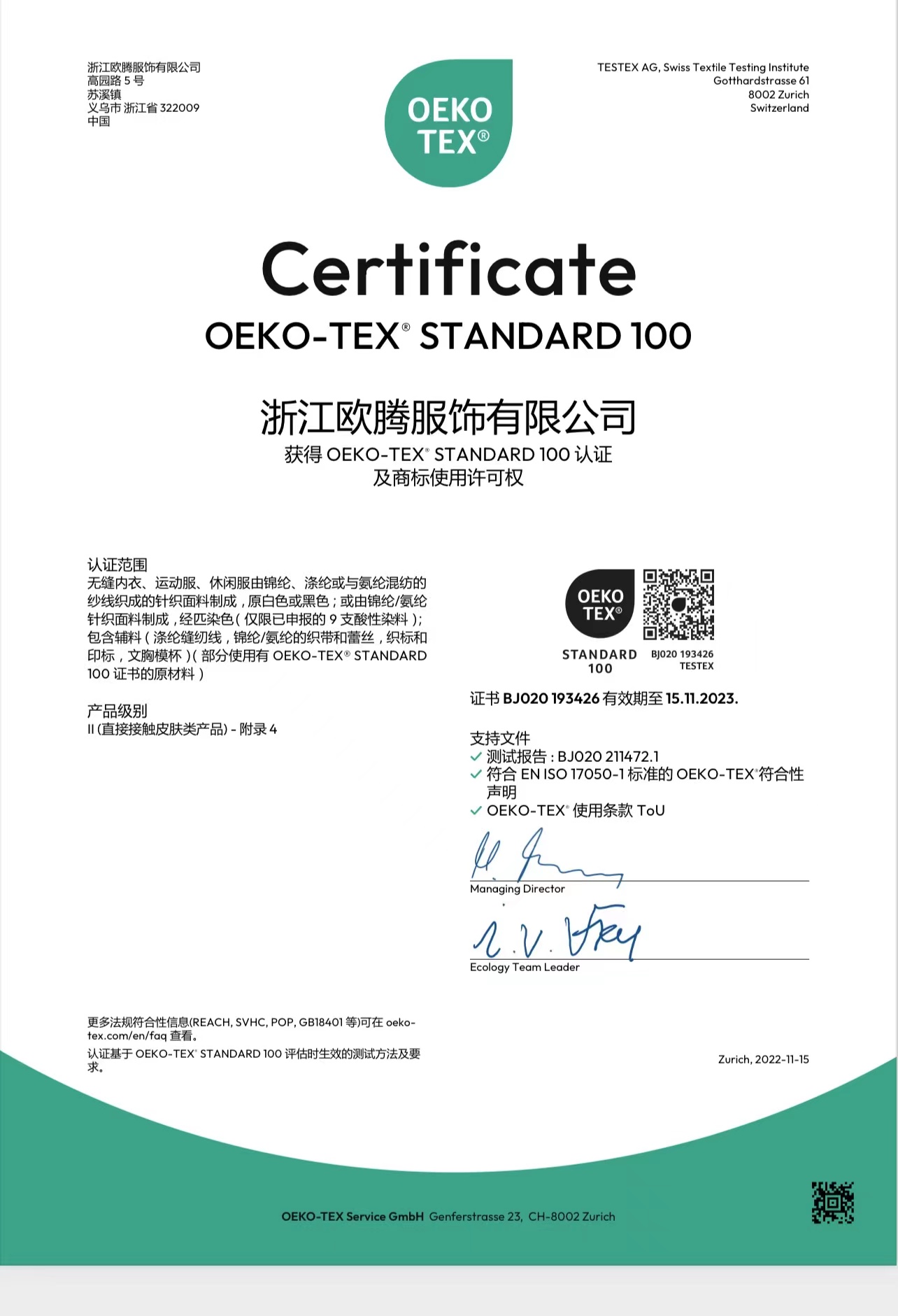 浙江歐騰服飾有限公司位于世界小商品之都-義烏。創(chuàng)立于2015年,是一家專業生產無縫針織運動服飾和內衣的工貿一體企業,擁有自主出口權。 工廠的占地面積約16000平方米 ,引進了大型圣東尼、高騰等多種先進的制衣設備300余臺。月產能可達90萬件。 歐騰服飾每年投入近百萬資金打樣開發(fā)新產品,有著一支高素質設計、技術員工隊伍。工廠先后通過了ISO 9001質量管理體系認證、BSCI認證、GRS認證、OEKO-TEX國際生態(tài)紡織品認證等多項專利檢測報告。可提供OEM&ODM服務。歐騰服飾以一套完整、科學的質量管理體系,生產的服裝從原材料紗線到成衣,質量完全能夠滿足國內、國際質量要求。獲得了客戶一致好評。工廠先后獲得省科技型企業、國家高新企業、義烏市誠信講信用單位、規(guī)上企業、信用AAA級等榮譽。